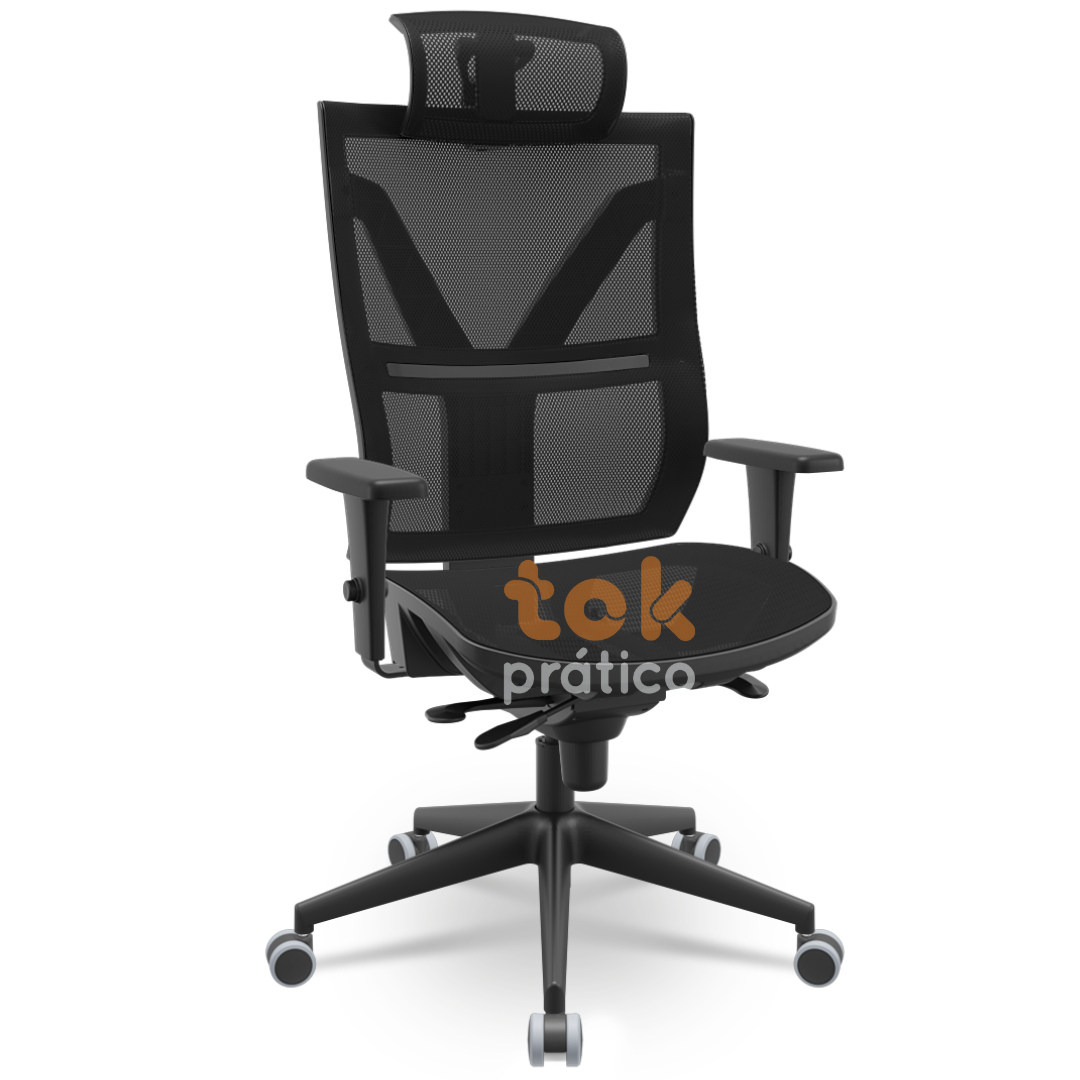 Cadeira Presidente Premium, Cadeira Presidente com tela bielástica, Cadeira com Braços Reguláveis, Cadeira com apoio Lombar, diversas regulagens para o encosto/Assento ambos em tela de alta resistência