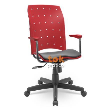 Cadeira Presidente Giratória a Gás, Com Braços, Assento/Encosto Plastico, Assento Com Estofamento, Mecanismo Relax de Regulagem, Regulagem de altura a gás, com Rodízios - 05 Anos de Garantia